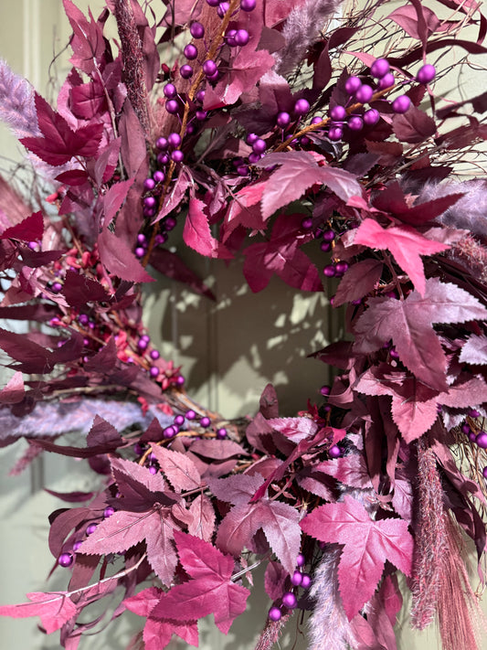 Boho Moody Fall Wreath with Burgundy Pampas, Purple Berries & Eucalyptus – 22”