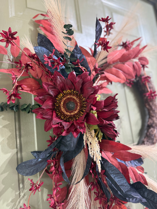 Moody Autumn Wreath in Red, Navy, and Forest Green